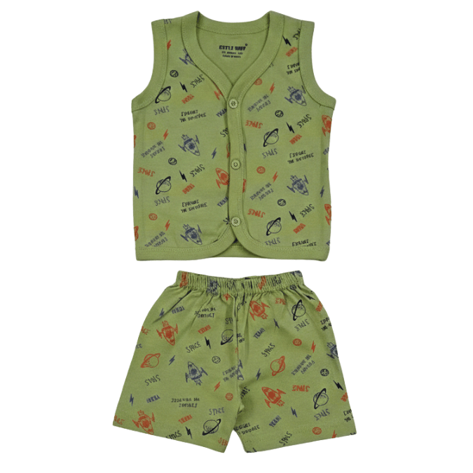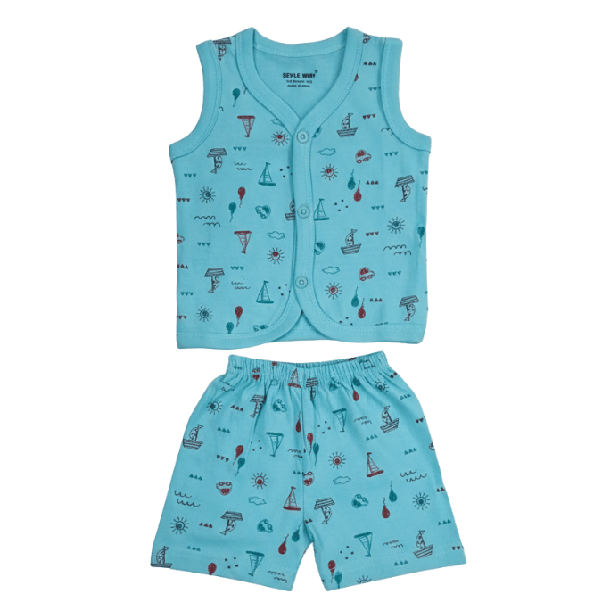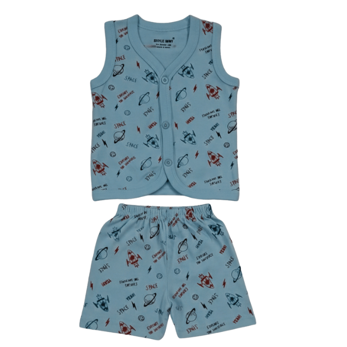 Be the first to review “Styleway Infant Full Open Sleeveless T-shirt with shorts Unisex Baby wear SW-41”