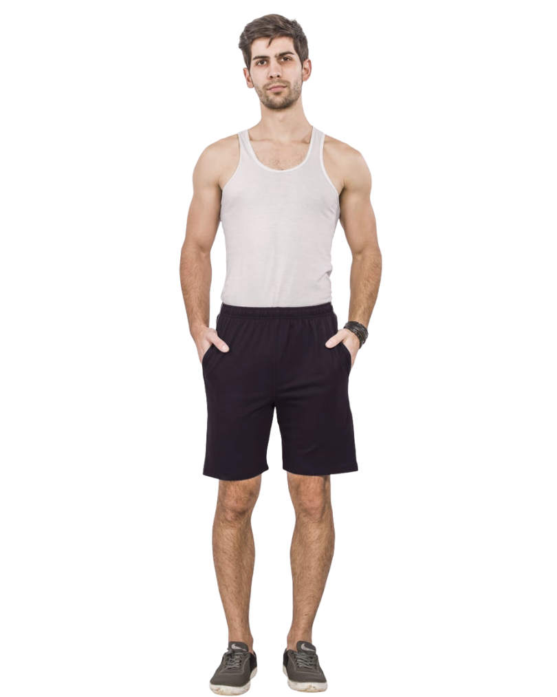 Mens shorts Black Colour 100% cotton bio washed fine fabrics one side zipper pocket next side normal pocket elastic waist band with string SW-777