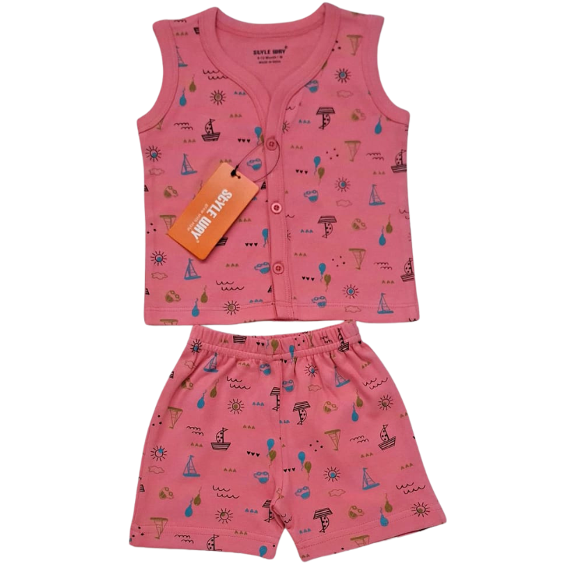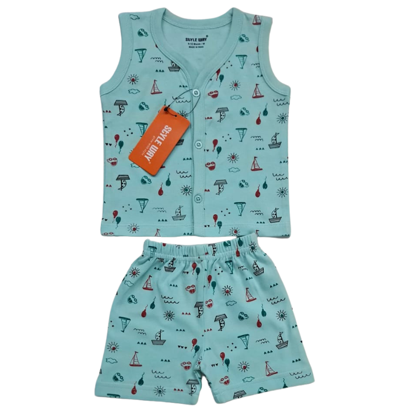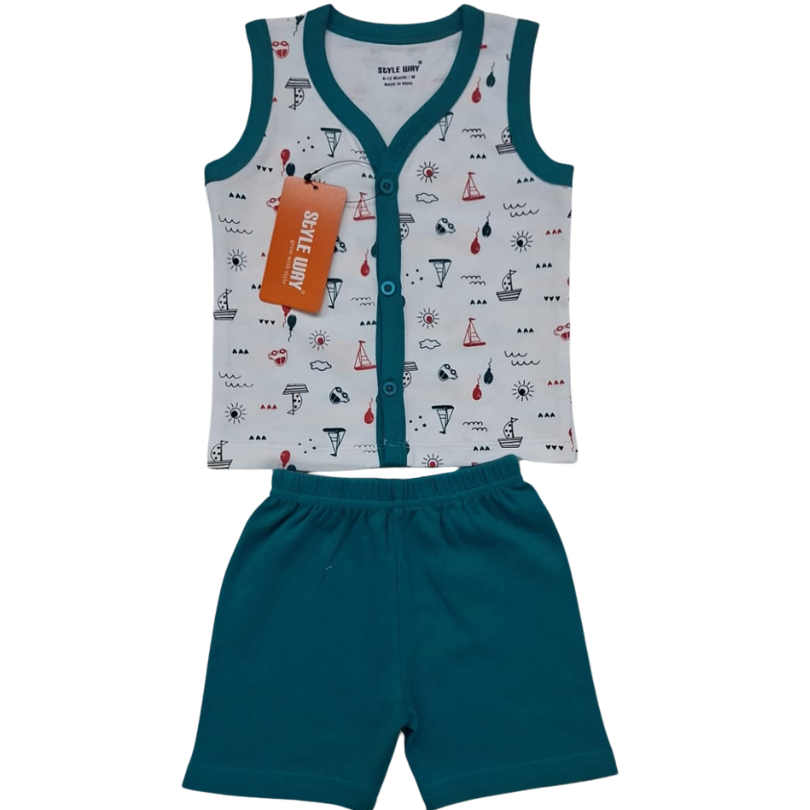 Styleway Boy baby Full Open Sleeveless T-shirt with Shorts set Baby wear SW-402