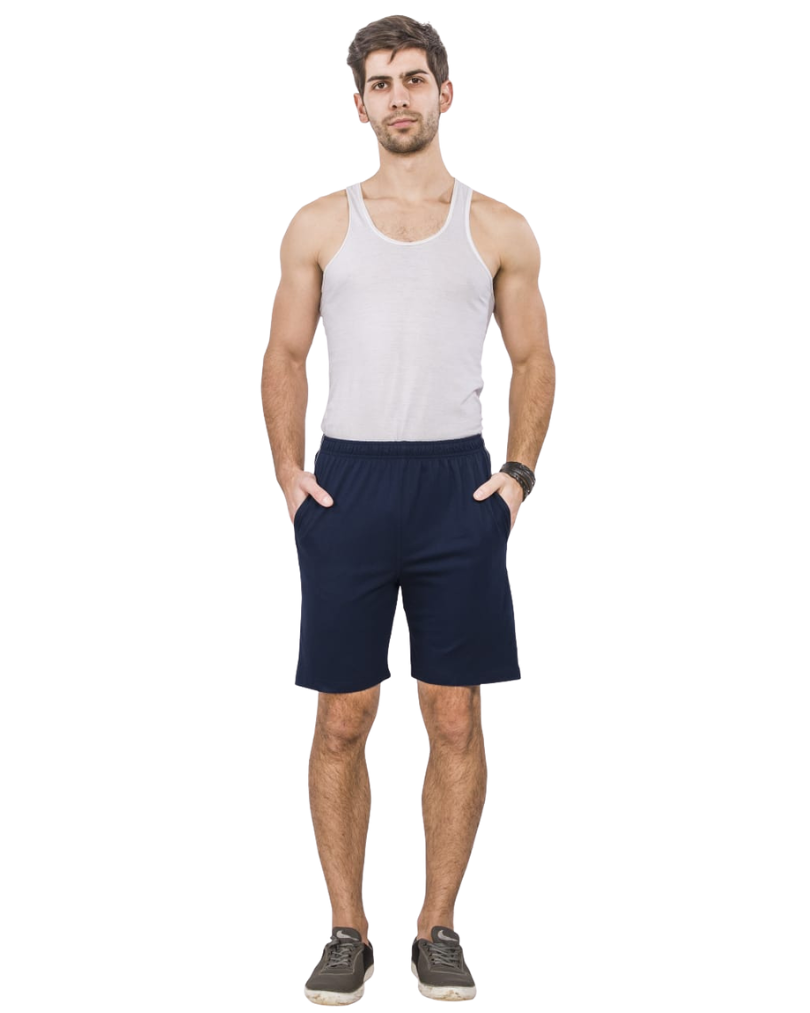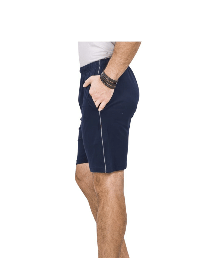 Mens shorts Navy Colour 100% cotton bio washed fine fabrics one side zipper pocket next side normal pocket elastic waist band with string SW-777